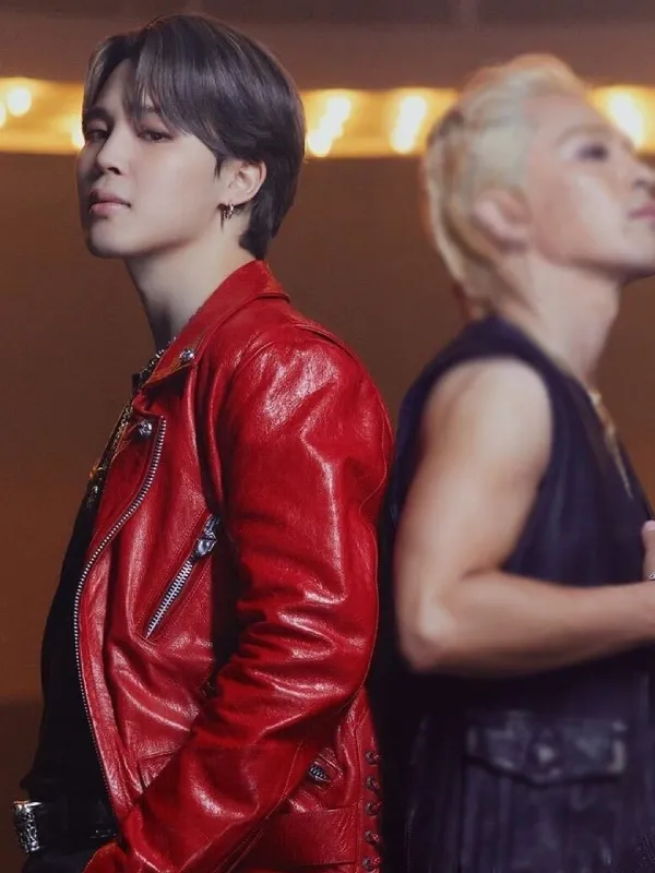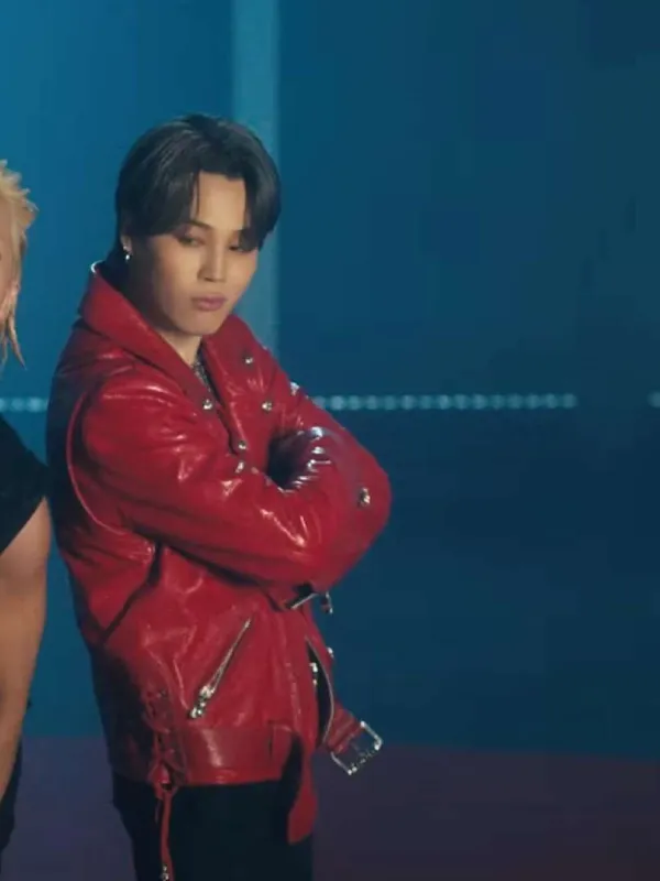 Taeyang Vibe Jimin Red Leather Jacket