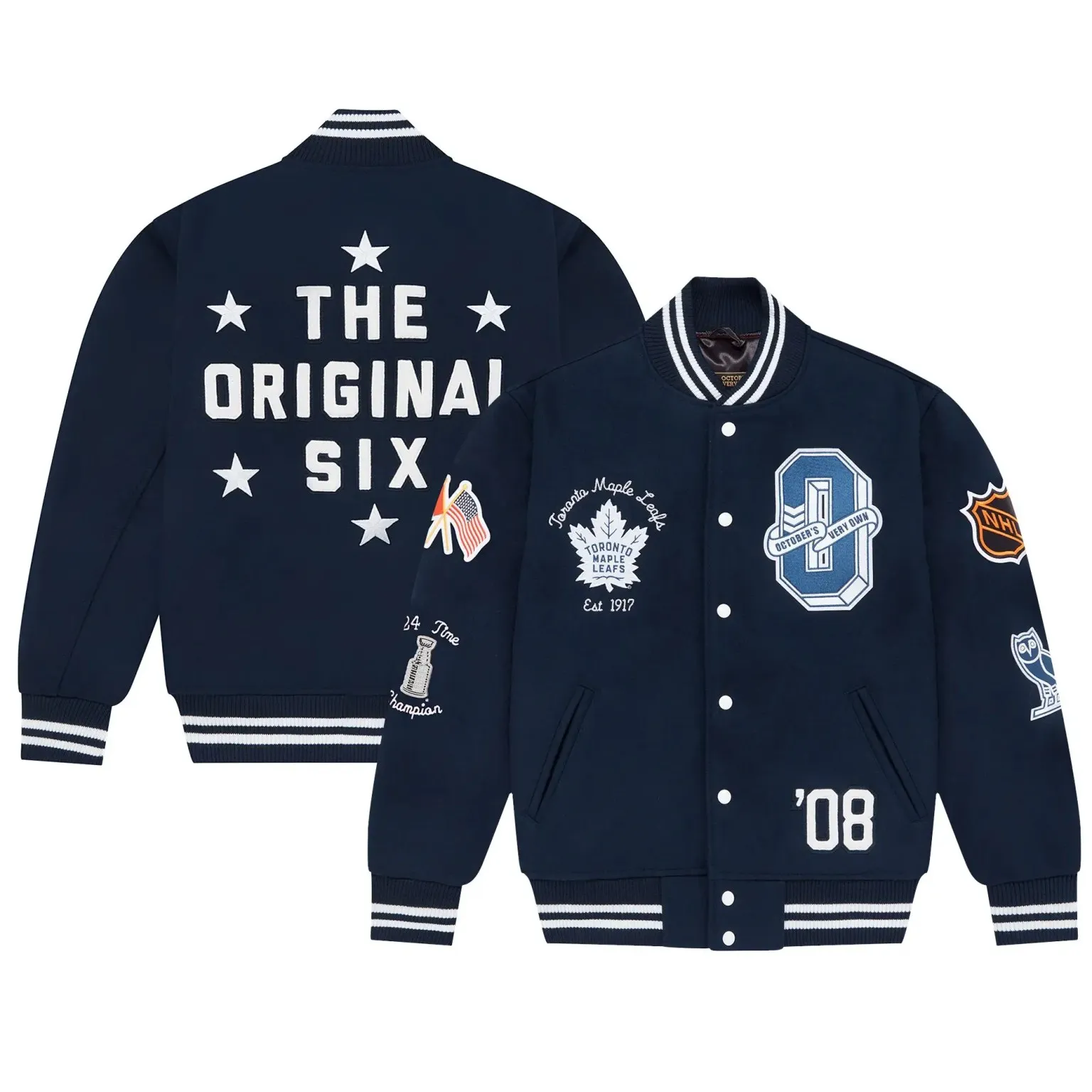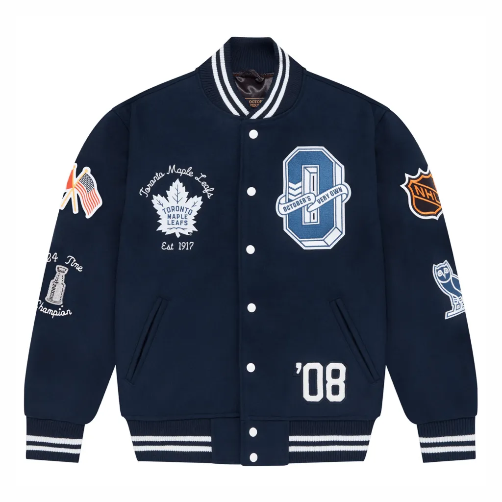 Home » Shop » OVO Varsity Jackets » Toronto Maple Leafs OVO x NHL Blue Full-Snap Varsity Jacket