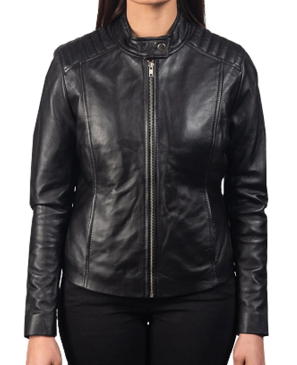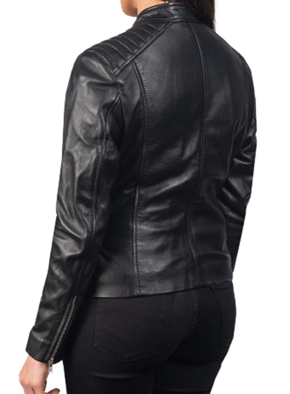 Women Black Biker Sheepskin Leather Shoulder Style Jacket