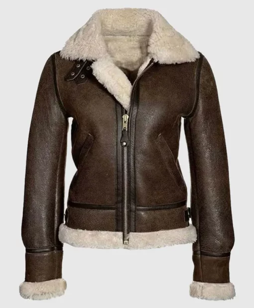 Women’s Dark Brown Leather Jacket Luxurious Shearling Interior