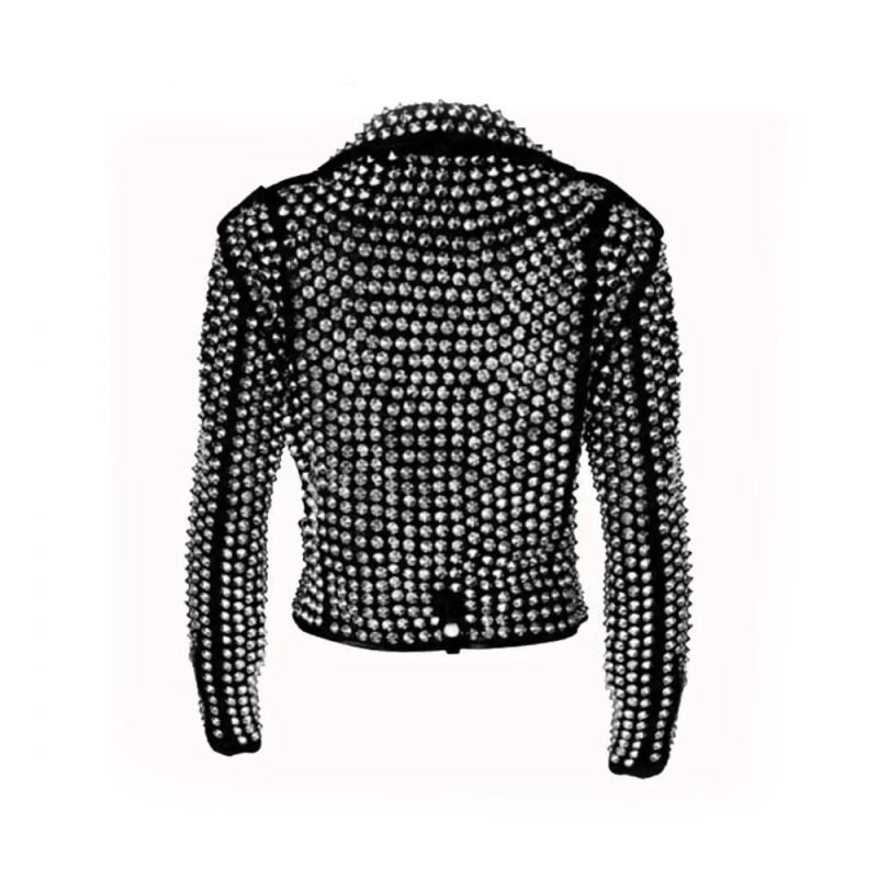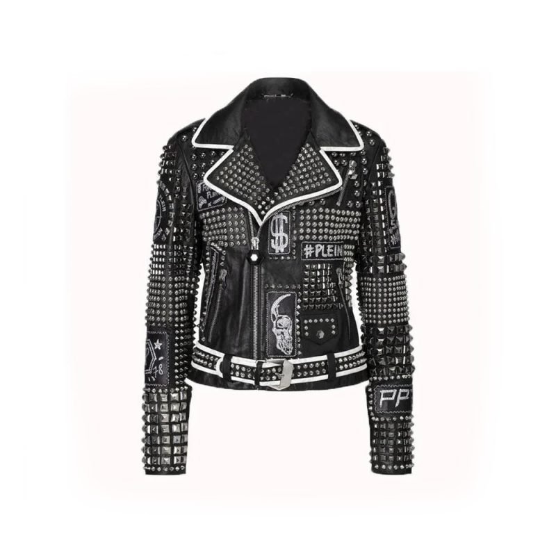 Handmade Women Philip Plein Black Fashion Studded Punk Style Leather Jacket