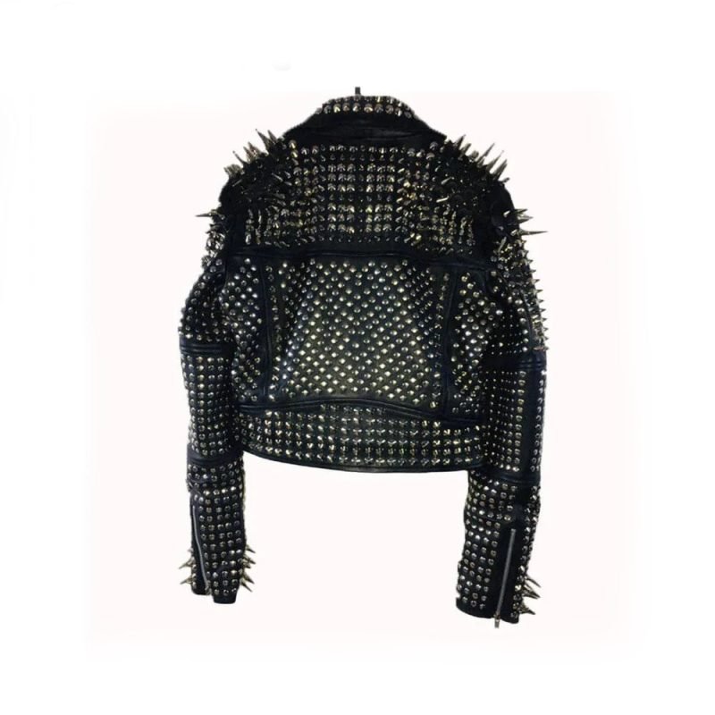 Handmade Women Black Fashion Studded Punk Style Leather Jacket