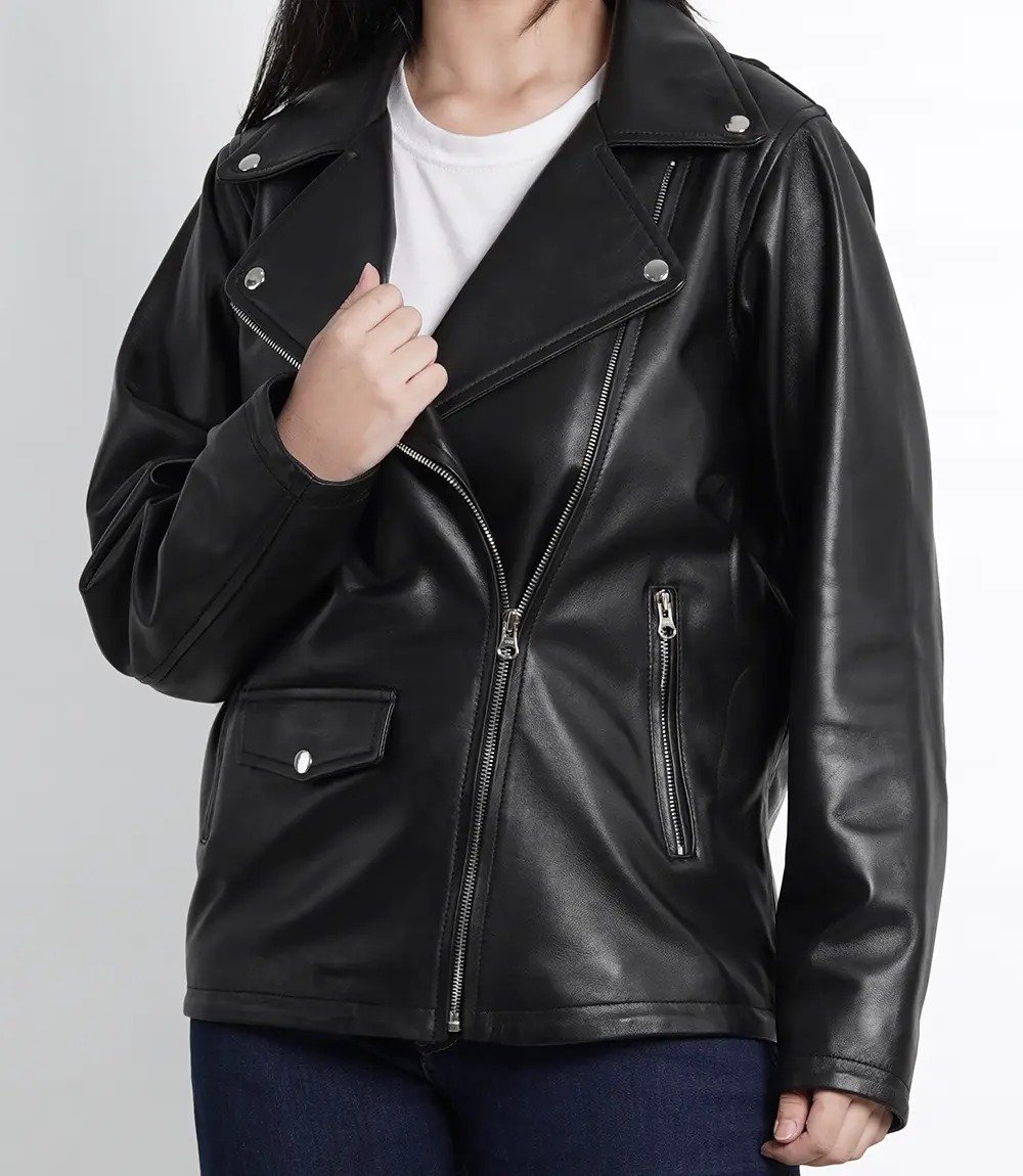 3 reviews for Women’s Black Asymmetrical Oversized Leather Biker Jacket