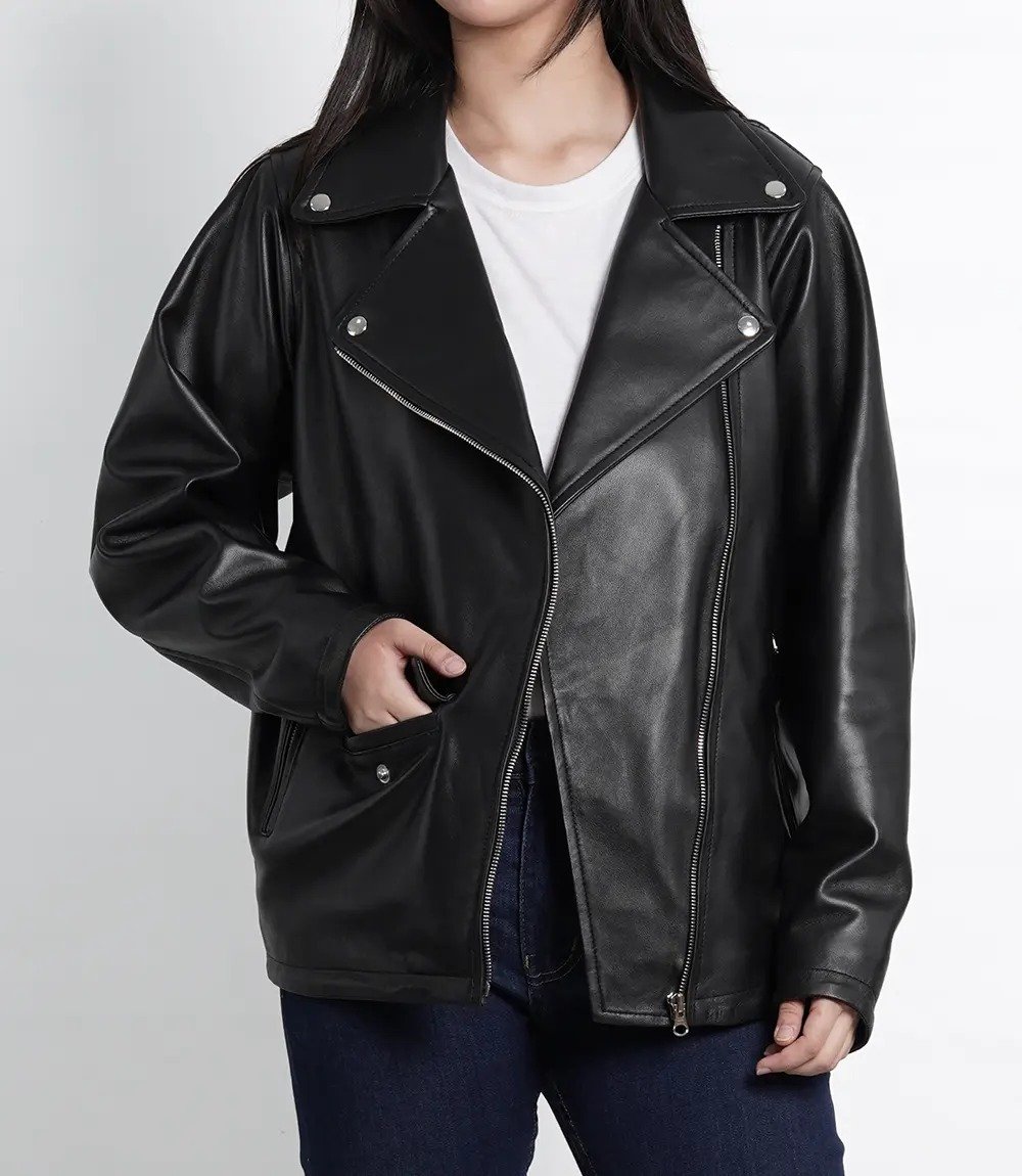 Don’t miss out on the Women’s Black Asymmetrical Oversized Leather Biker Jacket—your key to effortless style. Shop now at MotoCollection.us and elevate your wardrobe with premium quality and unbeatable biker chic. Limited stock available!