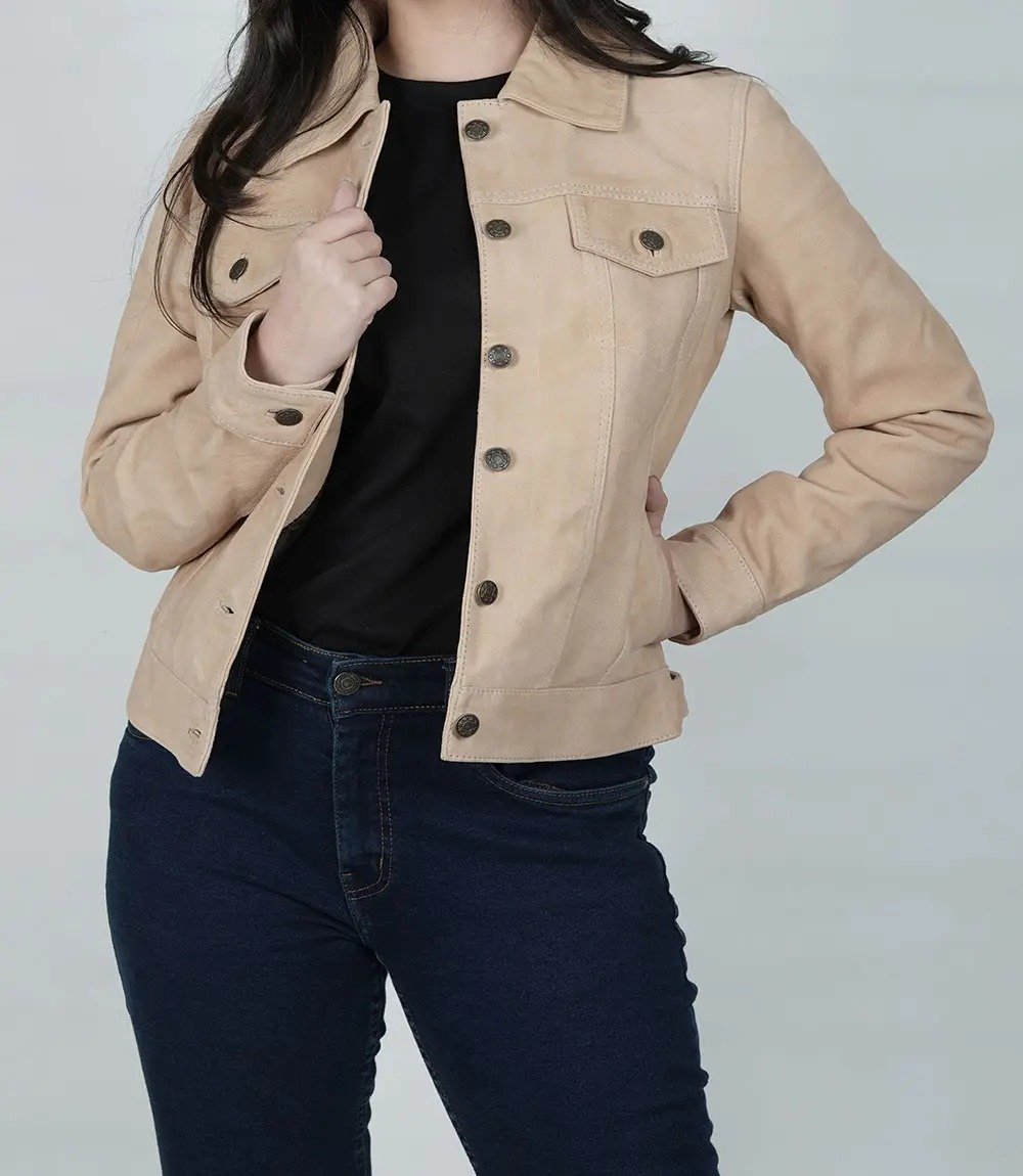 3 reviews for Women’s Camel Suede Trucker Jacket for Everyday Wear
